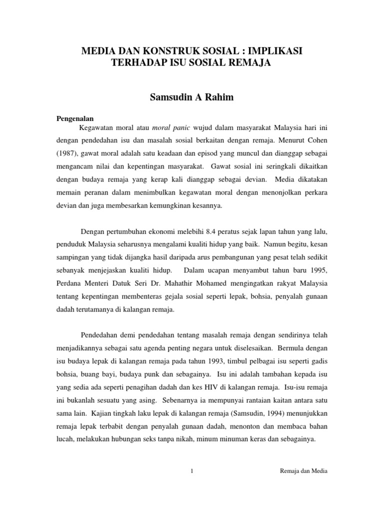 Remaja Media Dan Isu Masalah Sosial Pdf Document