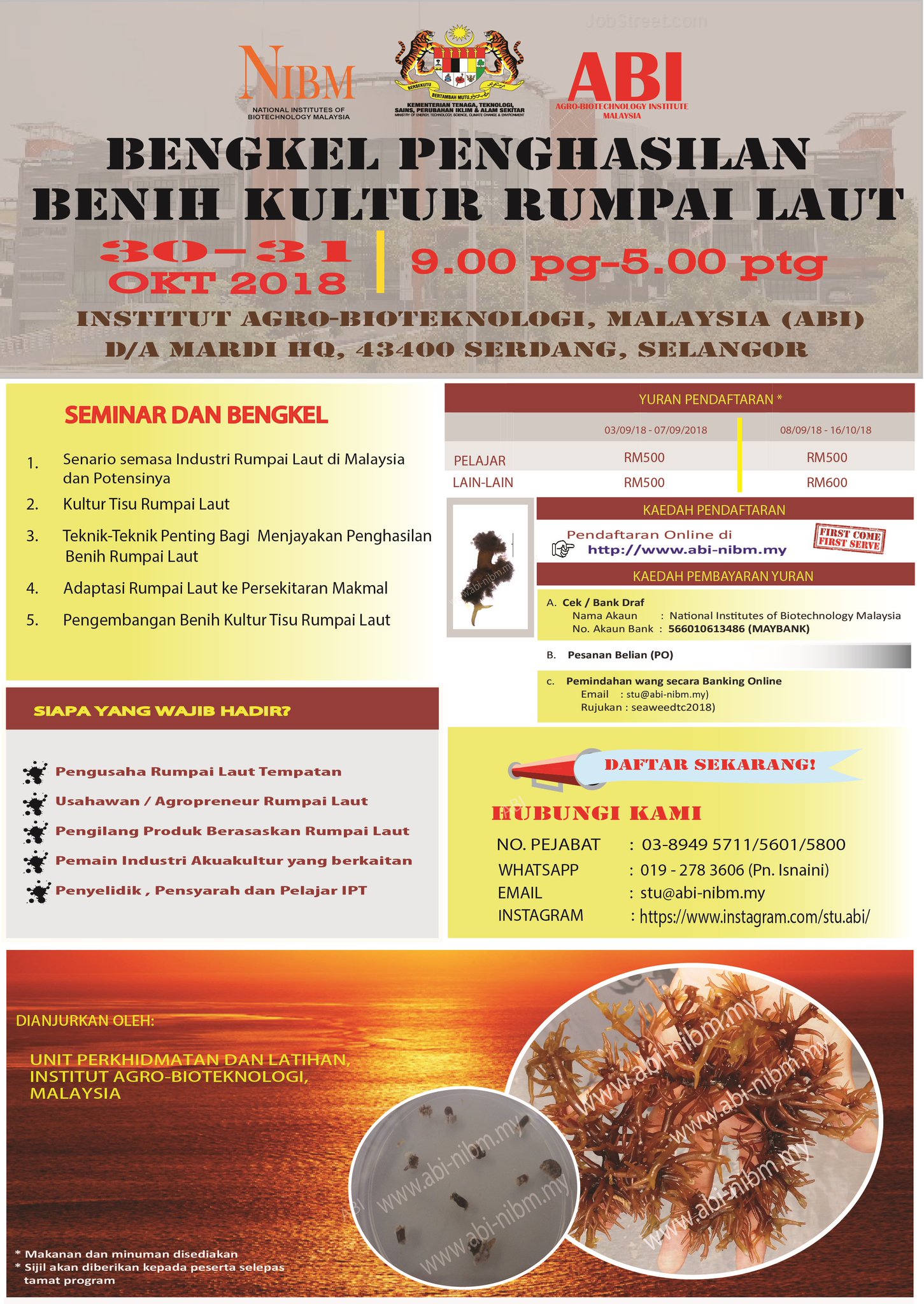 Nibm On Twitter One Of Our Institutes Agro Biotechnology Institute Malaysia Will Be Organizing A Workshop Seaweed Tissue Culture Workshop Clik This Link To Register Https T Co A4duluuucm Come And Join Us Nibm Abi