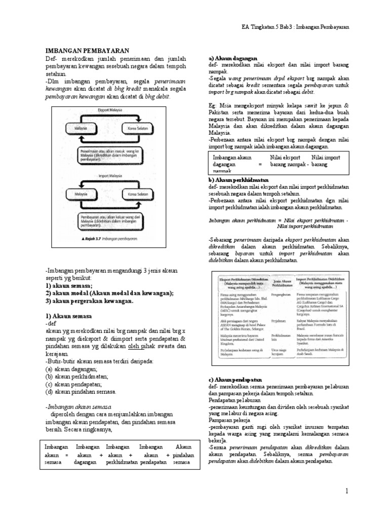 Nota Ekonomi Asas Tingkatan 5 Bab 3 Imbangan Pembayaran