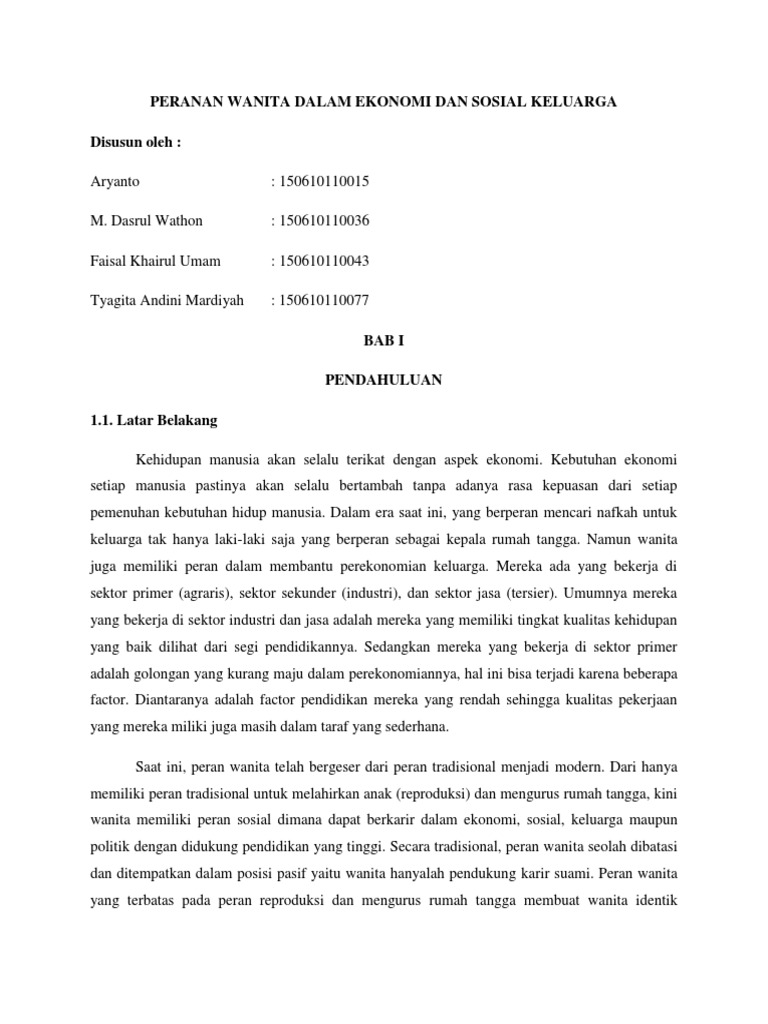 Peranan Wanita Dalam Ekonomi Dan Sosial Keluarga Docx