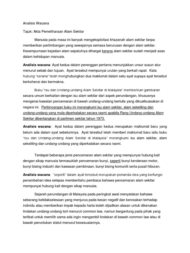 Analisis Wacana Ayat Kedua Dalam Perenggan Pertama Menunjukkan Unsur Susun Atur