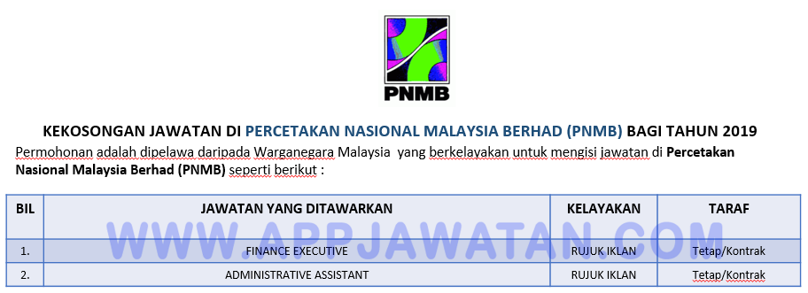 Jawatan Kosong Di Percetakan Nasional Malaysia Berhad Pnmb Appjawatan Malaysia