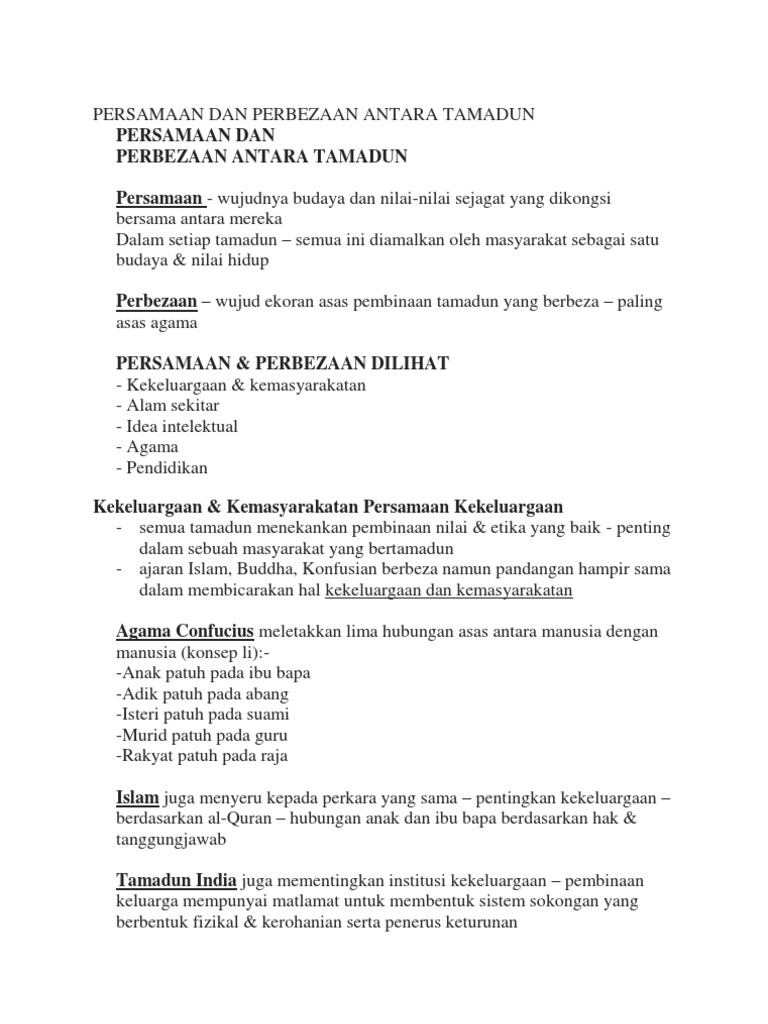 Persamaan Dan Perbezaan Tamadun Pdf Document