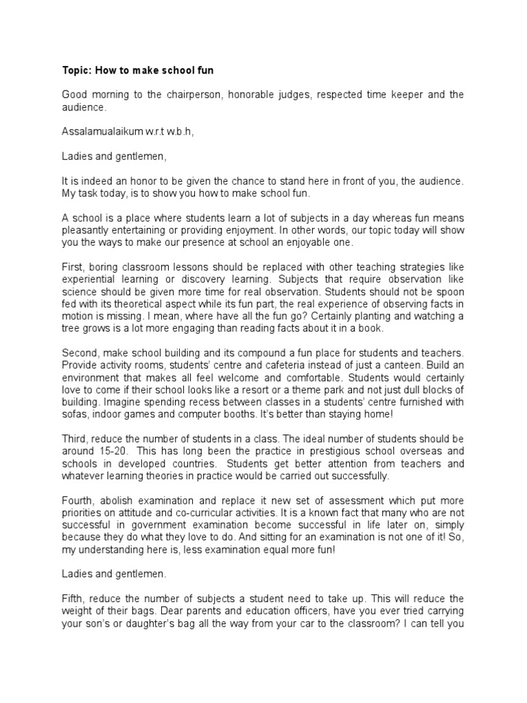 Secondary School Life Prison Or Paradise Public Speaking Text