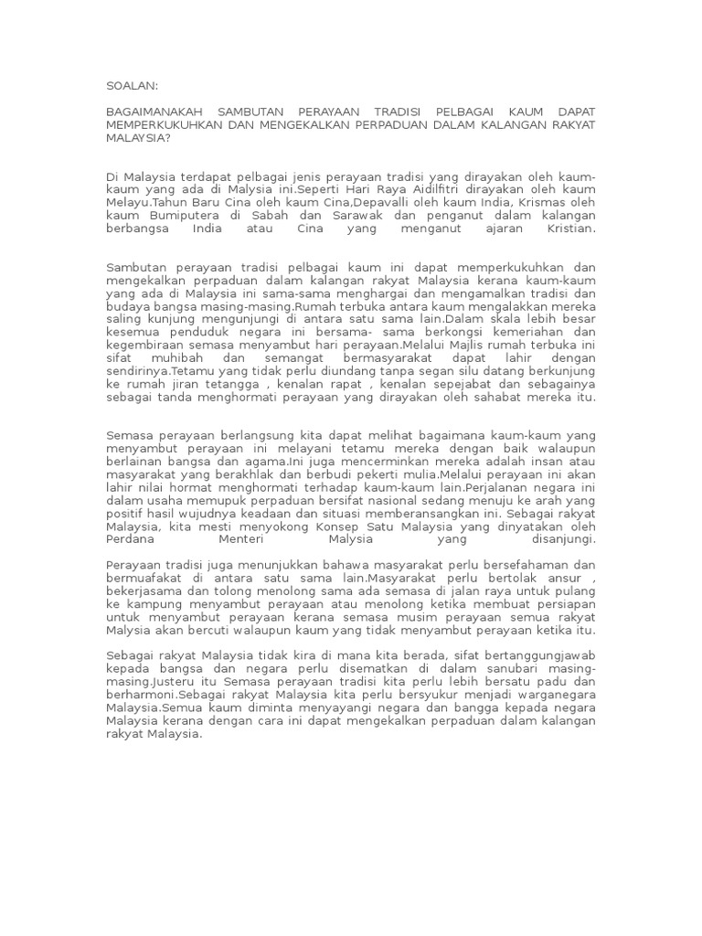 Bagaimanakah Sambutan Perayaan Tradisa Pelbagai Kaum Dapat Memperkukuh Dan Mengekalkan Perpaduan Dalam Kalangan Rakyat Malaysia Docx Document