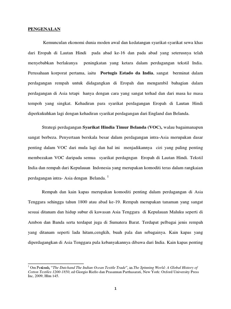 Kepentingan Rempah Dan Kain Kapas Dalam Perdagangan Asia Tenggara Sehingga Tahun 1800