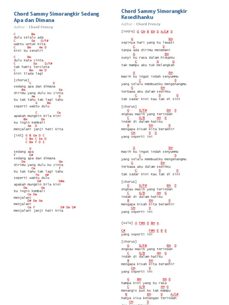 Sammy Simorangkir Sedang Apa Dan Dimana Chords Chordify