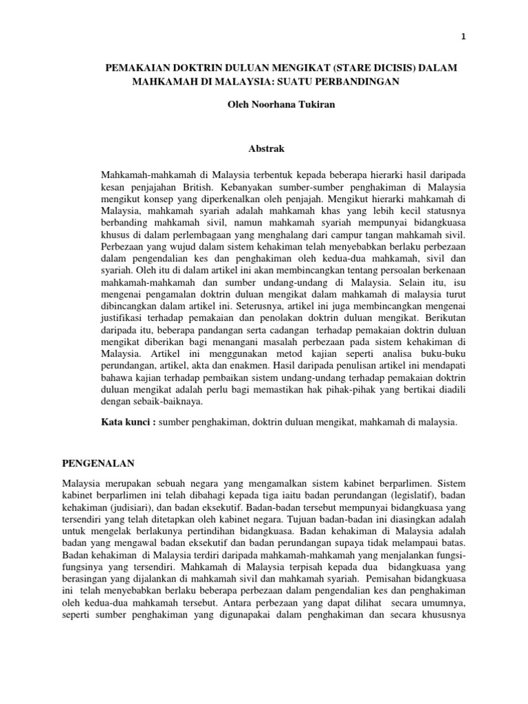 Pemakaian Doktrin Duluan Mengikat Dalam Mahkamah Di Malaysia Suatu Perbandingan
