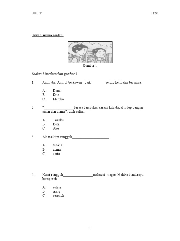 Contoh Kertas Peperiksaan Bahasa Malaysia Tahun 3 Kertas 1
