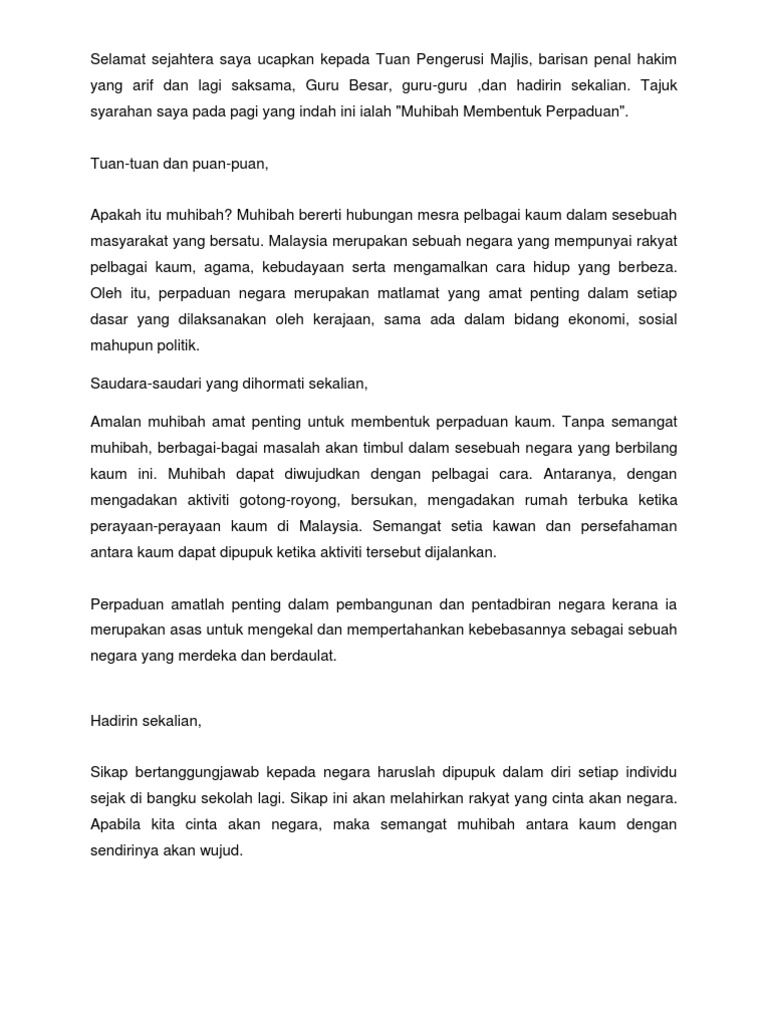 Contoh Syarahan Pertandingan