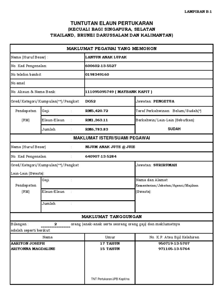 Borang Elaun Pindah Rumah Ke Luar Stesen Pdf Document