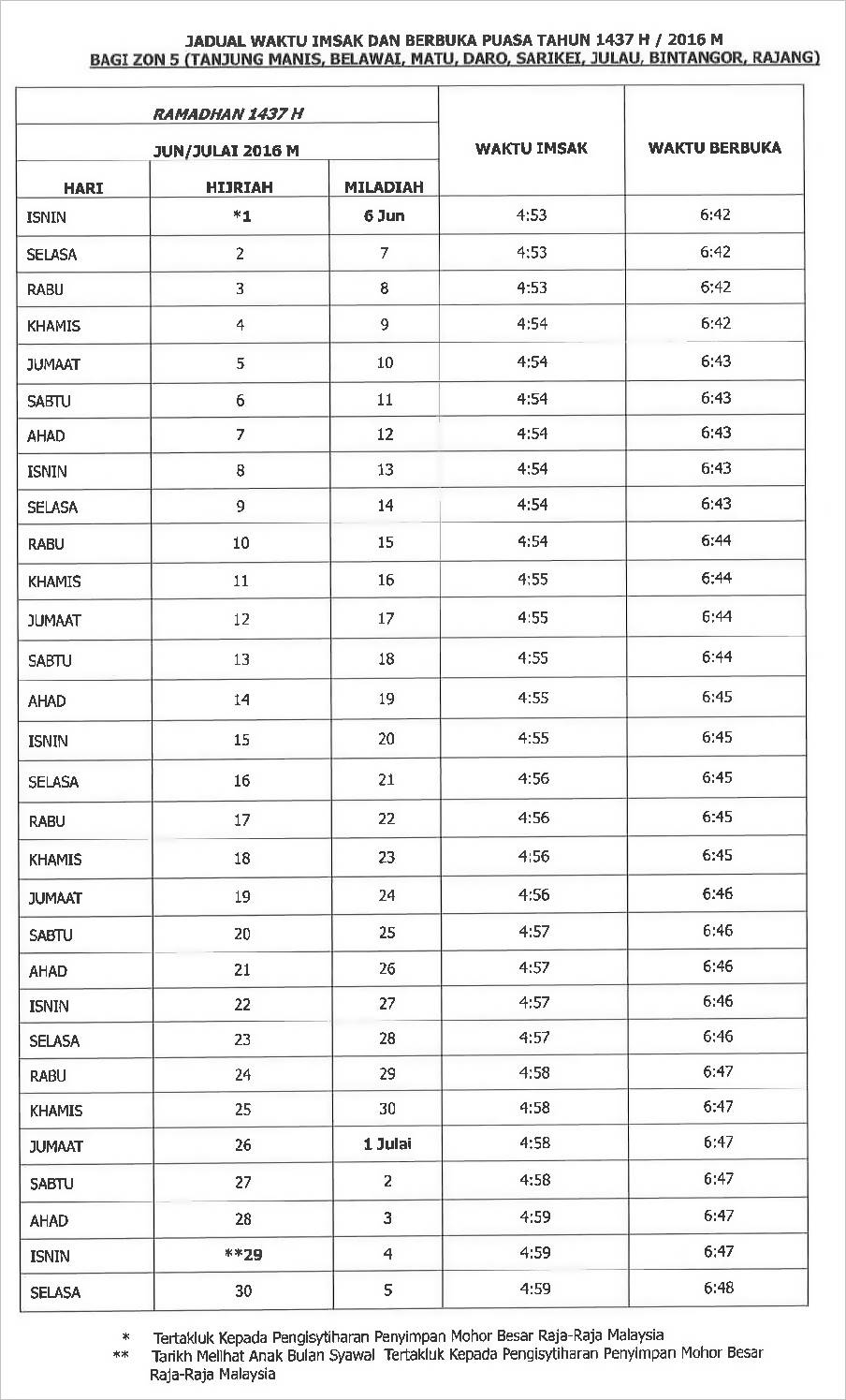 Kau Ilhamku Jadual Waktu Berbuka Puasa Dan Imsak 1437 H 2016 M Bagi Negeri Sarawak